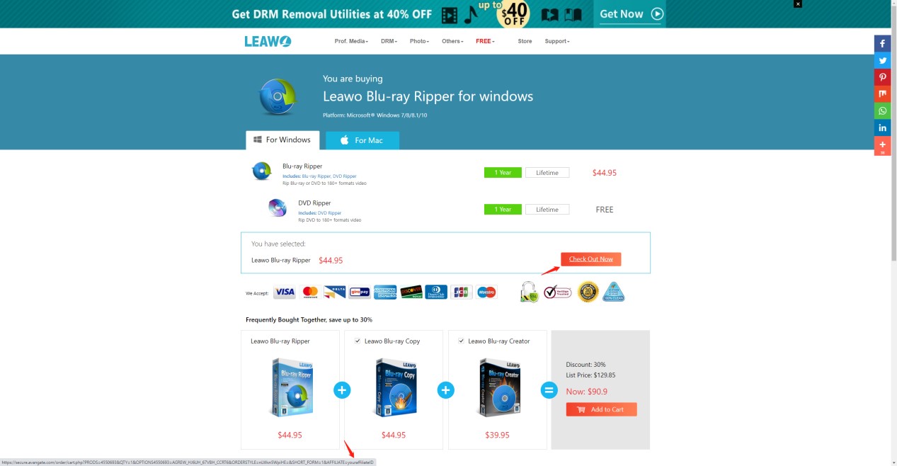 2. 如果游客来 Leawo 蓝光转换器 页面来自 https://www.leawo.org/blu-ray-ripper/?channel=ag&aff=youraffiliateID然后打开其他产品页面,比如 https://www.leawo.org/blu-ray-copy/。在此页面上,如果访问者点击“立即购买”按钮
