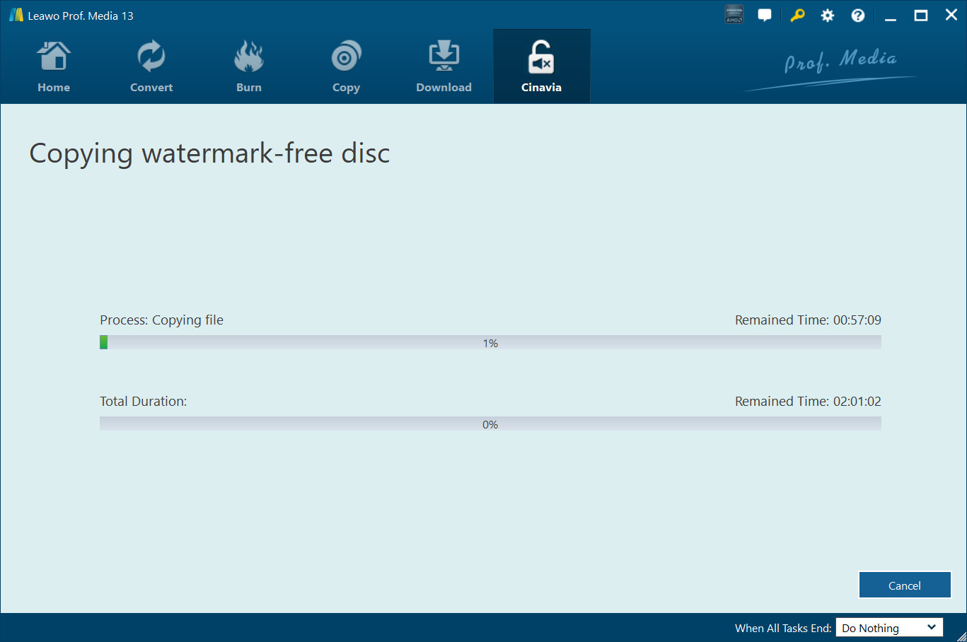 Leawo Blu-ray Cinavia Removal 可以去除 Cinavia 水印,并借助英特尔 Quick Sync GPU 加速技术高速获取无 Cinavia 的蓝光电影副本。此外,用户友好的用户界面让初学者也能轻松使用。