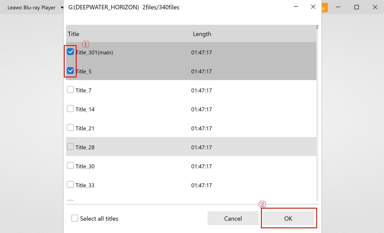 进入转换模块后,请在方框中勾选所需的标题。您也可以选择“选择所有标题”。然后点击“确定”进入下一步。