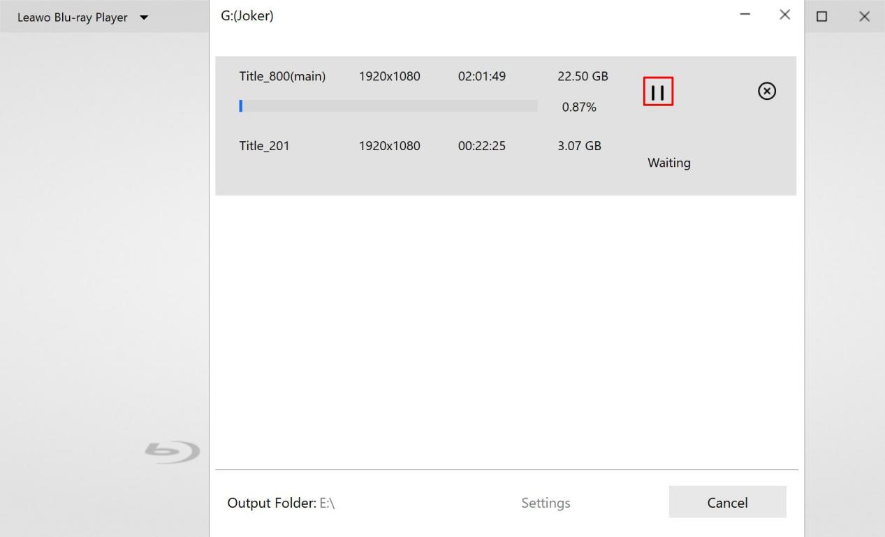 点击“转换”按钮后,蓝光转MKV格式转换将开始。您可以在转换过程中随时暂停或取消转换。