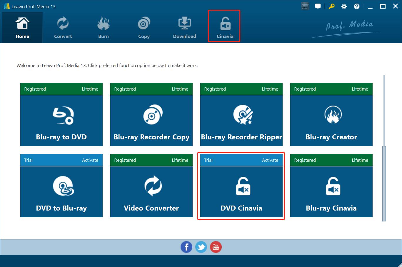 您还需要下载并安装 Leawo Prof. Media 在你的计算机上,因为 Leawo DVD Cinavia Removal 是一个包含在 Leawo Prof. Media.