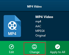“添加照片”按钮旁边默认有一个名为“MP4 视频”的下拉框。点击该框会弹出一个小面板,您需要在其中点击“更改”