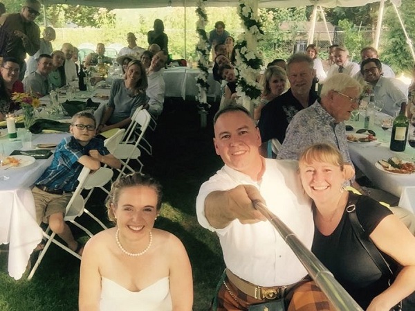 3. 如果你想拍摄超过 10 个人的自拍照,你应该使用自拍杆,因为它可以帮助你尽可能多地拍摄到人。拿自拍杆的人应该站得足够远,以便镜头能够覆盖所有人。其他人应该坐得端庄,调整姿势,对着镜头微笑。