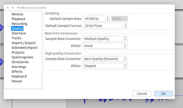 这款录音软件适用于 Windows、Mac OS 或 Linux 等系统。无论音频来源是麦克风、线路输入还是实时音频流,它都能录制来自不同音源的音频。Audacity 广受用户欢迎,无论是录音爱好者还是播客,都对其简单的操作赞不绝口。Audacity 支持的录音采样率范围为 44.1 至 192 kHz,这为录音棚和超声波录音奠定了基础。此外,它还支持 32 位浮点,为录制的信号提供了充足的空间。它拥有多种功能,例如均衡器和实用预设、音高、速度和节奏控制器、延迟、压缩器和噪音消除器等。Audacity 的关键在于其简洁性,尤其适合能够轻松学习编辑的初学者。