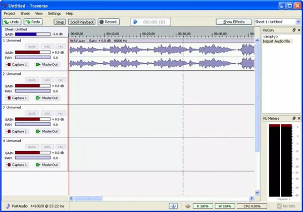 Traverso 可在 Windows、Mac OS 和 Linux 系统上使用,能够满足日常录音需求。这款录音软件打破了传统的菜单结构,采用鼠标快捷键和先进的键盘操作,使录音任务的执行更加便捷。此外,它还提供一系列选项,方便用户快速制作录音演示 CD。无需退出 Traverso 即可创建目录并刻录光盘。Traverso 的其他功能也体现了其独特的设计理念,包括无损编辑、插件使用、无需更改实际样本即可进行编辑、音频处理时间的缩短(从而降低延迟并提高性能)。