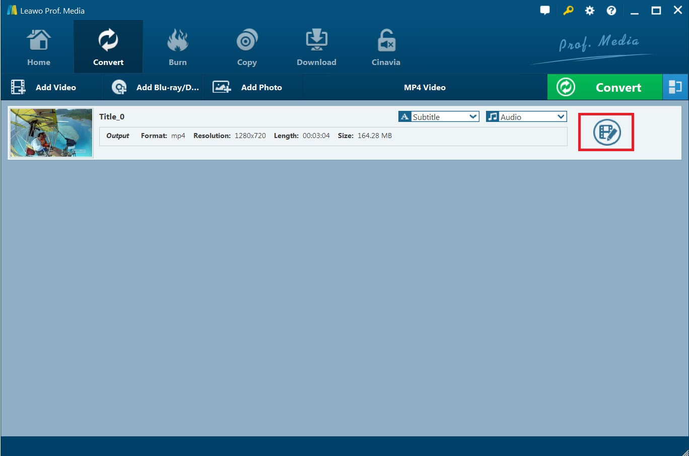 正如刚才提到的, Leawo Blu-ray Ripper 使您能够以多种方式编辑蓝光文件中的 M2TS 视频:修剪、水印、裁剪、效果、3D 等。加载源 M2TS 视频文件后,单击 M2TS 标题末尾的编辑图标进入编辑面板,您可以在其中进行上述视频编辑。