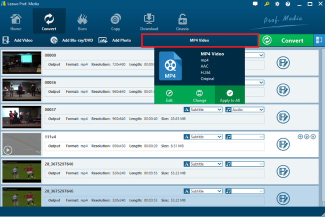 第 4 部分:如何转换 MP3 到 MP4 与 Leawo 视频转换器?