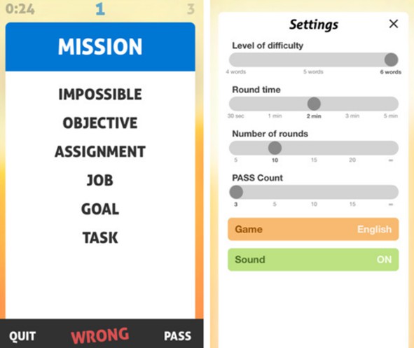 这款应用要求一位玩家说出一个单词,并附上一系列不能说的单词。当你让另一位玩家说出这个单词时,你需要传递手机。计时器响起后,拿着手机的人输了。