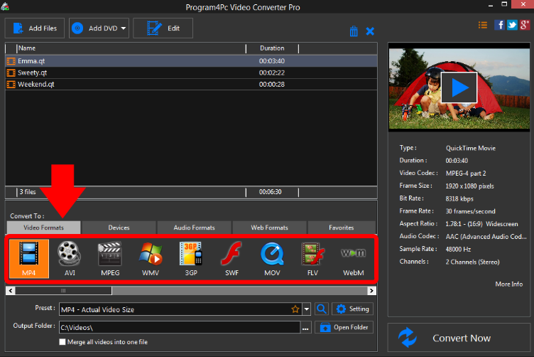 第 2 部分:QT Converter 转换 QT 视频 - Program4PC Video Converter Pro