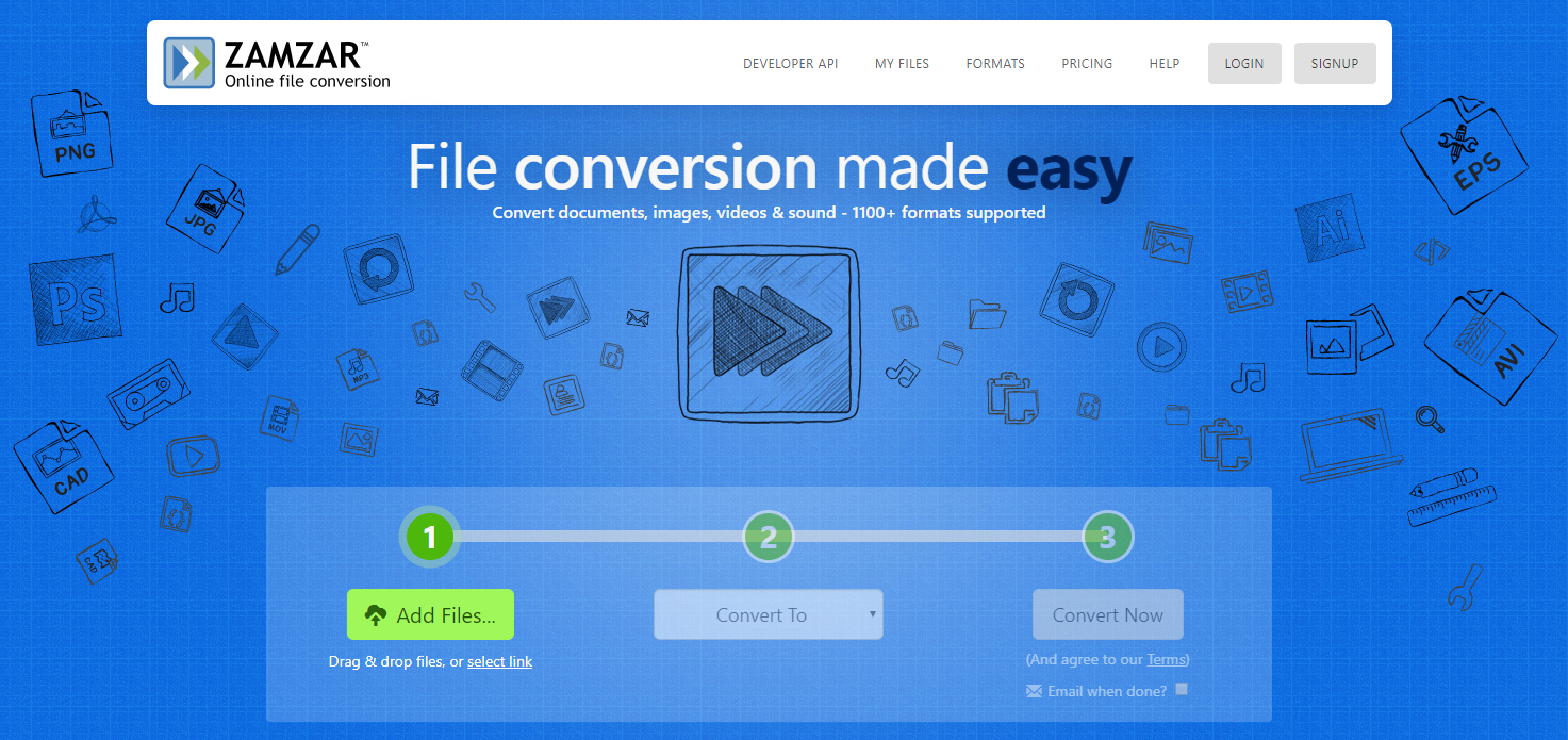 今天推荐的下一个 QT 转换器是一款名为 Zamzar 的在线视频转换工具。Zamzar 是一款非常易于使用的在线文件转换工具,无需任何额外的程序或插件,即可将您的 QT 视频文件转换为多种其他格式。有了稳定的网络连接,您只需几分钟即可将 QT 视频转换为 Zamzar 支持的任何格式,最终输出结果也应该具有不错的质量。然而,由于 Zamzar 是一款在线视频转换工具,它没有太多的自定义功能,这意味着您只能以正常速度和质量转换视频。因此,Zamzar 非常适合那些想要快速转换 QT 视频文件且不需要太多自定义选项的用户。现在,我将向您展示如何使用 Zamzar 在线转换 QT 视频文件。