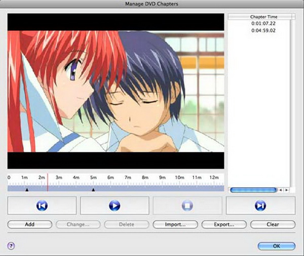 在添加 MPG 文件的工具栏下方,有两个独特的按钮。选择“管理章节”按钮即可访问 DVD 章节面板。调整完成后,点击“确定”返回主界面。
