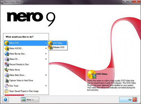在 Windows 电脑上下载并安装 Nero 刻录 MPG 到 DVD 的程序。弹出窗口后,系统会询问您要执行的操作。点击左侧菜单中的第一个“制作 DVD”选项。然后继续选择“DVD 视频”按钮。