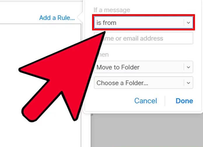 选择“来自”,然后输入您不想接收电子邮件的姓名或电子邮件地址。