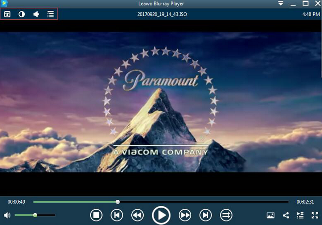 步骤4: 设置视频和音频参数。点击标题区第二个图标和第三个图标分别设置视频参数和音频参数。 Leawo 蓝光播放器可以让您获得定制的视频并为您带来更加特别的观看体验。