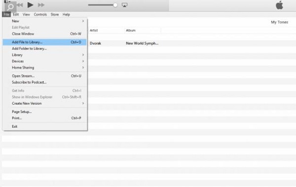 7. 现在转到“文件 > 将文件添加到库”将铃声添加到 iTunes。