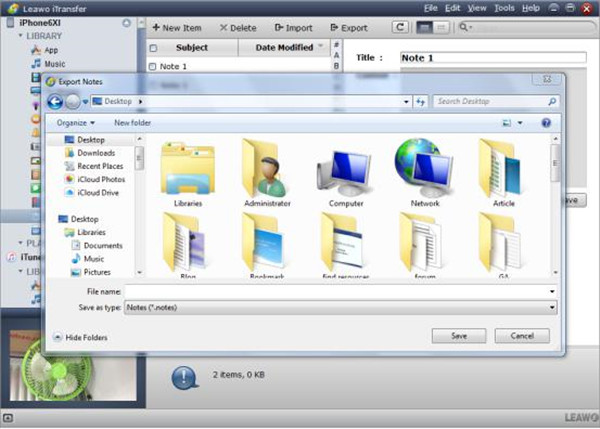 4. 选择传输笔记的输出目录后,点击“保存”按钮,开始通过 Leawo iTrasnfer。然后会弹出一个对话框,显示传输百分比,让你了解笔记的传输进度。传输完成后,你可以进入刚刚保存笔记的输出目录,查看已备份的笔记。