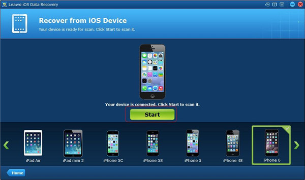 2. 使用支持的 USB 数据线将您的 iPhone 连接到电脑,然后单击“开始”按钮开始扫描您的 iPhone。