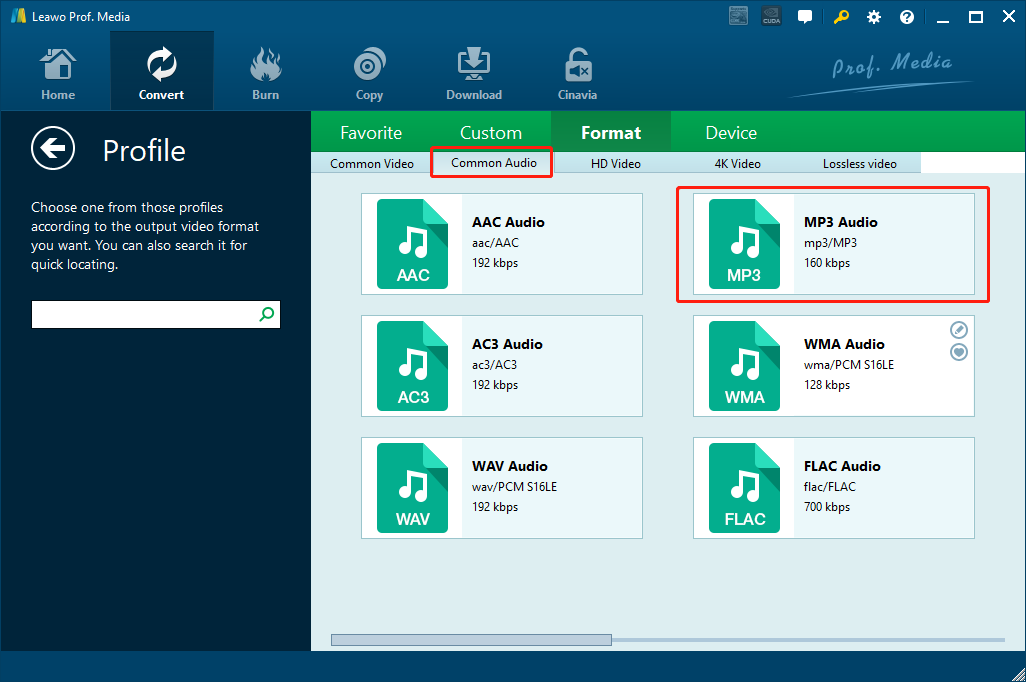 第三部分:将 AIFF 转换为 MP3 - Leawo 视频转换