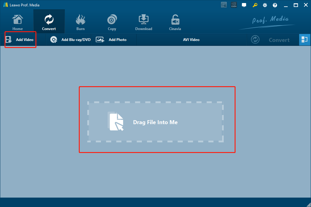 步骤1: 正式上线 Leawo 选择“视频转换器”并进入“视频转换器”功能模块。将您的 AIFF 文件导入到 Leawo 视频转换器,可以直接将文件从文件夹拖放到软件界面上,或者点击“添加文件”按钮找到源文件。