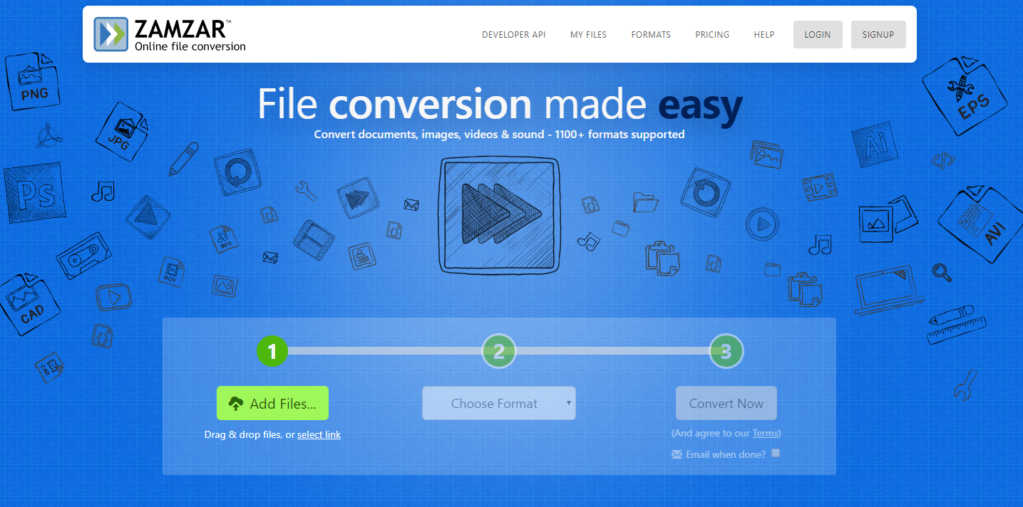 Zamzar 是一款简单的在线视频转换工具, 五大免费在线视频转换器与上面介绍的专用转换软件相比,Zamzar 可以为任何视频转换任务提供更简单的工作流程。但另一方面,在视频文件大小、可用任务数、转换速度和支持的格式方面有很多限制。此外,由于您必须上传原始文件然后下载转换后的文件,当您的文件很大时,可能需要很长时间才能完成任务。但像 Zamzar 这样的在线视频转换工具的最大优势在于其高可用性和高效率。使用 Zamzar,您无需下载其他程序,仍然可以获得出色的 DV 到 AVI 转换效果。现在让我们来看看如何使用在线转换工具 Zamzar 将 DV 转换为 AVI。