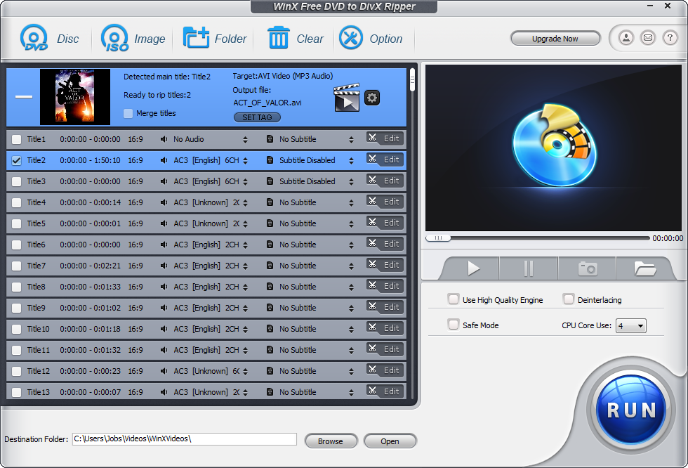 我们首先要推荐的DVD转换器是WinX DVD Ripper。WinX Free DVD to DivX Ripper可以帮助您免费转换和翻录DVD内容,包括DVD光盘、DVD文件夹和DVD ISO镜像文件,并将其转换为与HP TouchPad平板电脑兼容的视频文件格式。您可以免费使用它。 将 DVD 电影转换为 MP4支持多种设备和播放器的 AVI、FLV、MKV、WMV 等数字文件格式。