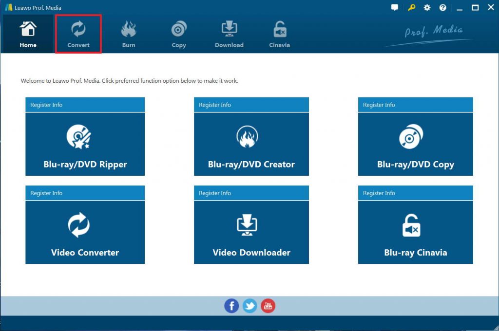 正式上线 Leawo Prof. Media 然后打开“转换”模块或单击主界面上的“蓝光/DVD 翻录器”选项。