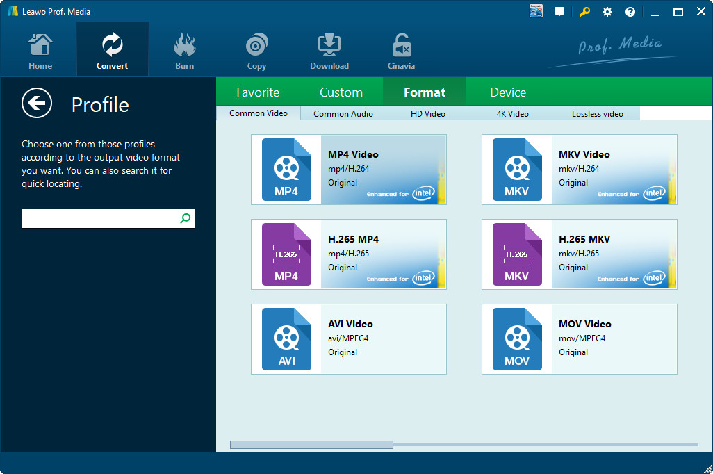 如果你只是想观看手头的 H.265 编码视频, Leawo 免费蓝光播放器软件 强烈推荐。这 一体式媒体播放器 可以播放几乎所有内容,包括 DVD、蓝光和几乎所有标准格式的视频,当然,还支持 H.265。测试表明,使用 Media Player 播放 H.265 非常流畅。