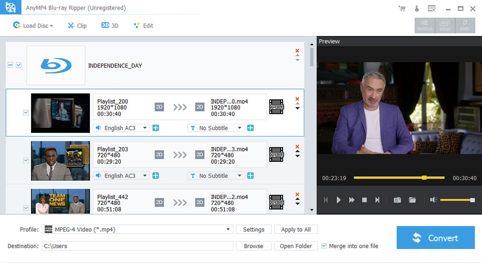 像 Leawo 蓝光开膛手,AnyMP4 蓝光开膛手可以帮助您轻松解密、翻录、转换和缩小光盘、文件夹和 ISO 文件中的蓝光电影,并将其转换为 Surface Pro 的视频。您可以使用 AnyMP4 蓝光开膛手轻松将蓝光/DVD ISO 文件翻录并转换为 2P 的 MKV、MP1080、AVI、M4TS 等视频,适用于 Surface Pro。