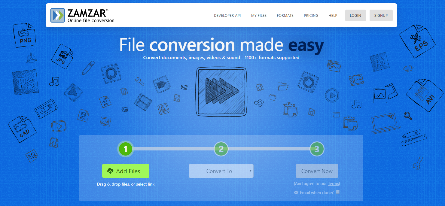 步骤1: 访问 Zamzar 官方网站。