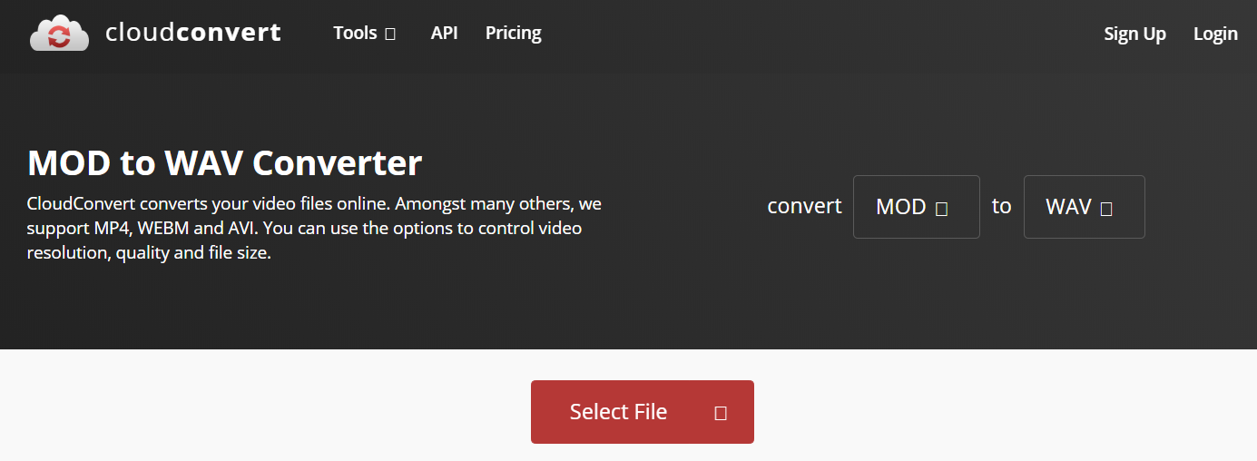 除了 MOD 转 WAV 转换器软件之外,还有一些功能强大的在线服务可以免费将 MOD 文件转换为 WAV 文件,无需安装任何软件。CloudConvert 是最受欢迎的在线视频转换器之一,您可以利用它高效地将 MOD 文件转换为 WAV 文件。它支持 200 多种格式,包括各种音频、视频、文档、电子书、压缩文件、图像、电子表格和演示文稿格式。此外,它还提供多种选项,您可以根据需要调整大多数转换类型。CloudConvert 声称能够保证隐私安全,因此您可以放心使用。由于无需下载或安装任何软件,您只需几个简单的步骤即可将 MOD 文件转换为 WAV 文件。