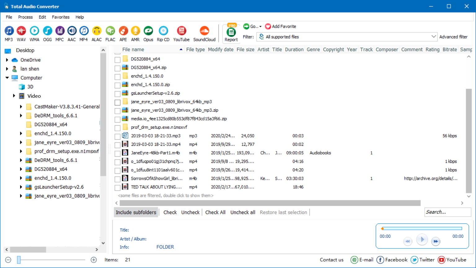 步骤 1. 下载并安装 Total Audio MP3 安装转换器后,程序将自动启动。您会发现计算机上的所有文件都会列在主界面的左侧。