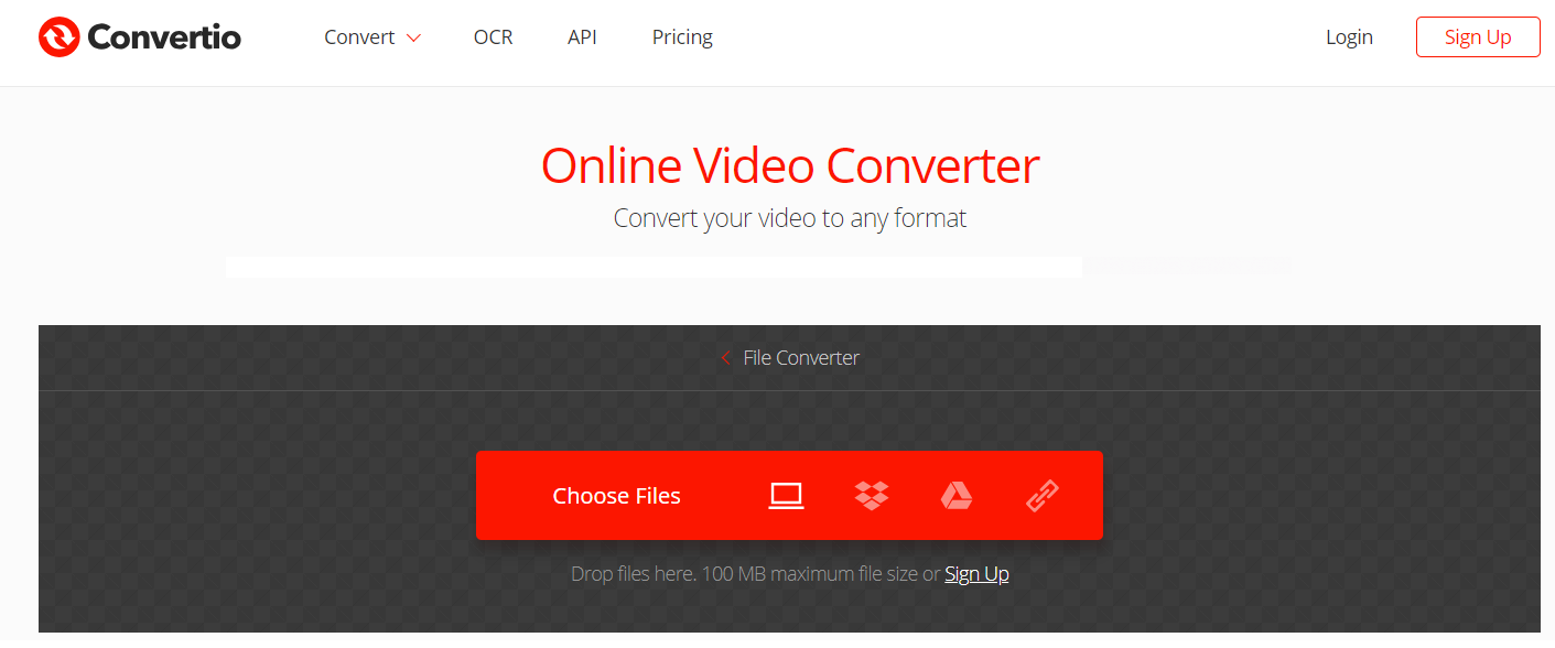 步骤1. 从您的PC、Mac或移动设备中选择要转换的TP视频文件。您也可以从Google Drive或Dropbox帐户中选择TP视频文件,或者直接将TP视频文件拖放到网页上。