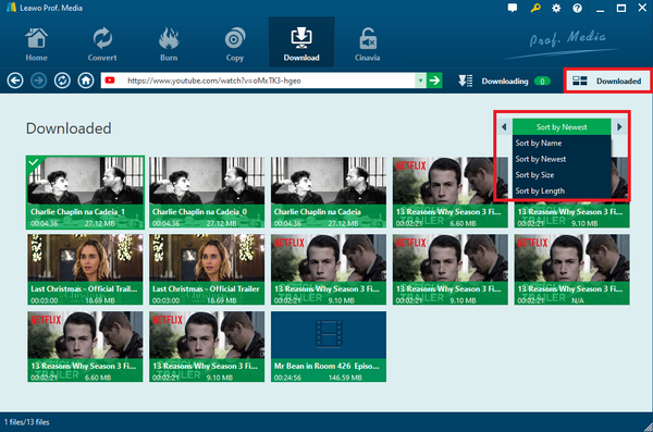 在主界面上 Leawo 使用视频下载器,您可以直接在 YouTube 上观看视频,或在地址栏中输入/粘贴新链接以打开新链接。此 YouTube 下载器会检测当前页面上所有可下载的视频源,并提供下载选项。