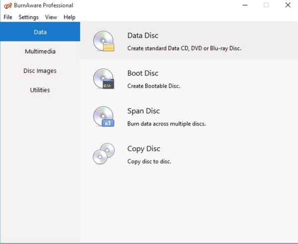 您可以使用的最后一款功能强大的蓝光复制工具是 BurnAware。BurnAware 复制程序提供多个版本,包括免费版、高级版、专业版、商业许可证版等等。如果您只需要将蓝光光盘复制到其他光盘,那么免费版就足够了。使用这款蓝光复制工具,您可以轻松完整地复制光盘上的原始蓝光内容,且不会造成任何质量损失。您还可以创建可启动的 CD 或 DVD,以及制作标准的光盘映像。此外,这款复制程序的输出结果还包括 ISO 映像。此外,它简洁明了的用户导向界面给许多人留下了深刻的印象,并提供了简单易懂的说明。它兼容最新的 OS X 和 Windows 10 操作系统。由于您使用的是免费版,因此无法体验光盘解密或光盘菜单个人设置等附加功能。
