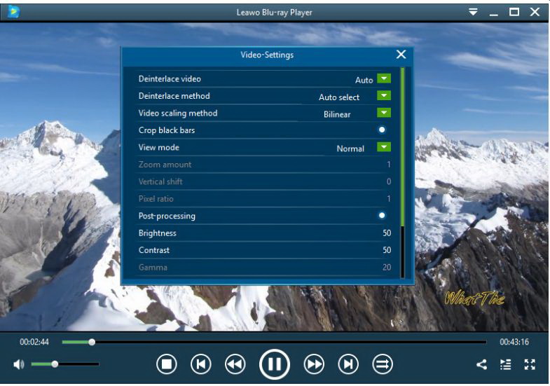 leawo 蓝光播放器视频设置