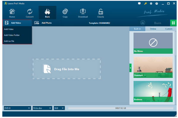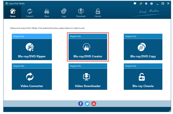 请注意,该程序已纳入 Leawo Prof.Media 套件,因此您可以点击 DVD刻录 图标进入刻录 DVD 的页面。