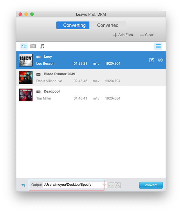 Leawo Prof. DRM Mac 可以帮助您轻松移除 iTunes 电影的 DRM 保护,然后将受 DRM 保护的 iTunes 电影转换为无 DRM 保护的 MP4 视频,以满足各种用途。下载并安装 Leawo Prof. DRM 在您的电脑上,然后按照以下指南学习如何移除 iTunes 电影的 DRM 保护,并将 iTunes 电影转换为无 DRM 保护的 MP4 视频以进行刻录。