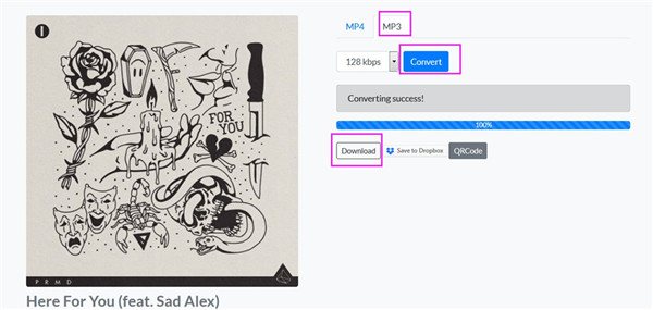 2. 搜索结果将显示在列表中,您需要选择想要下载的电子音乐并点击。在下一个界面中,点击“MP3 > 转换”等待转换过程完成。转换完成后,您可以点击“下载”按钮将其保存到电脑本地文件夹。