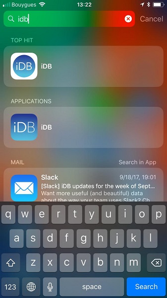 如果你的苹果设备上有很多应用程序图标,那么搜索 iPhone 上已安装的应用程序的一个好方法是使用 Spotlight。你只需要输入手机应用程序的名称,它就会显示在结果列表中,如下图所示。