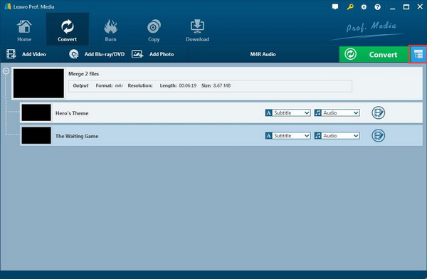 此外,最重要的是,这款专业的转换软件能够以 6 倍的速度转换视频和音频文件,输出时还能保持 100% 的原始质量。使用这款强大的 OGG 转 M4R 转换器,您无需担心质量损失。下载并安装 Leawo 视频转换器,您只需简单的步骤即可将 OGG 转换为 M4R。
