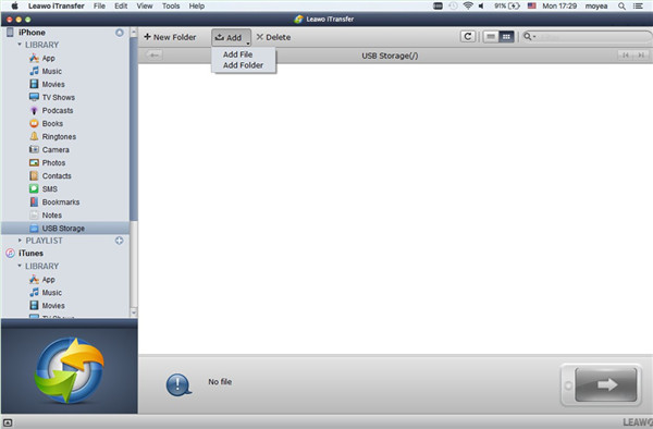 最好的开源办公套件或 Mac 版开源 Excel 确实方便用户处理数据,并且可以将数据保存在 Mac 上供以后使用。如果您需要在 iOS 设备上查看电子表格,可以利用 iTransfer 适用于 Mac 以解决此问题。 Leawo iTransfer Mac 功能非常强大,用户界面也非常友好。将电子表格从 Mac 存储到 iOS 设备后,您可以将数据带到任何需要的地方。至于如何使用 iTransfer 对于Mac,您可以看看下面的详细图解。