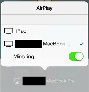 2. 在下拉菜单中选择“MacBook”作为 AirPlay 接收器。您还需要在列表中启用“镜像”。这样,AirPlay iPhone 到 MacBook 的问题就可以彻底解决了,您可以在 MacBook 上清晰地看到 iPhone 上正在播放的内容。