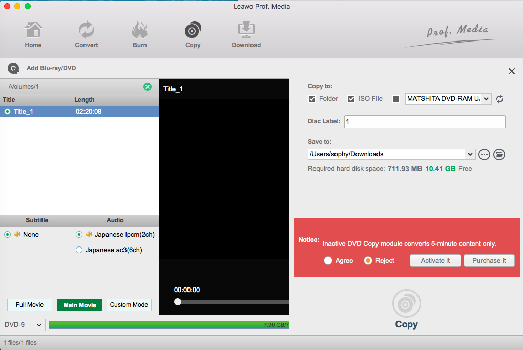 NO。 1 Leawo 蓝光复制