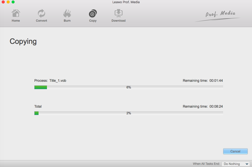 第一步 再次单击“复制”按钮,在 Mac 上复制蓝光(或 DVD)的过程就开始了。