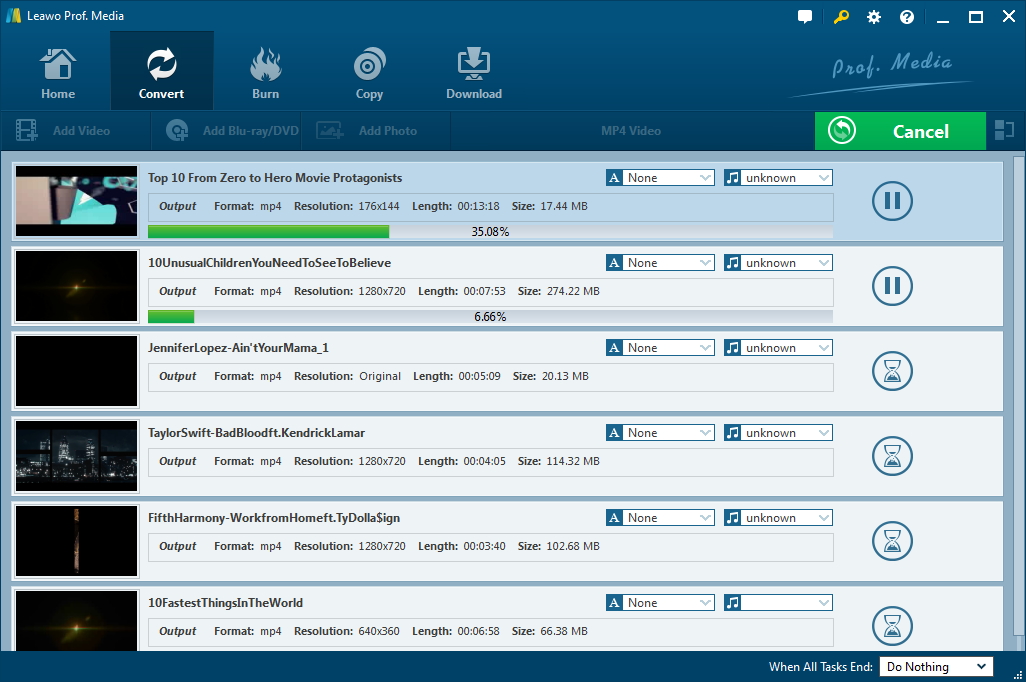 最后点击底部的“转换”按钮即可 Leawo 视频转换器将 MKV 文件转换为 MP4 文件。然后您可以在转换面板上查看所有转换任务。