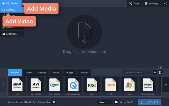 2. 在 Movavi 视频转换器上,点击“添加媒体”>“添加视频”选项,浏览并将 MKV 文件添加到 Movavi 视频转换器中进行转换。您可以添加多个 MKV 文件进行批量转换。