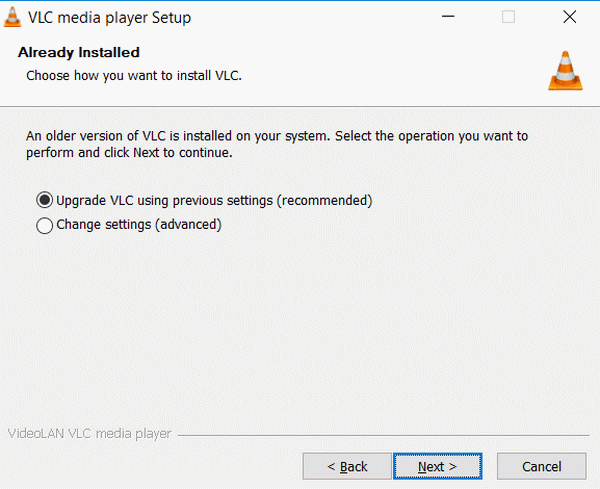 步骤 6。 勾选第一个选项——“升级” VLC 使用之前的设置”,然后进入下一页。