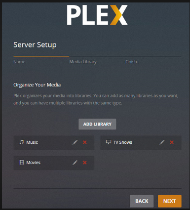 步骤1: 登录您的 Plex 媒体服务器。登录后,系统会提示您设置服务器,请按照说明进行操作。然后,点击“下一步”。