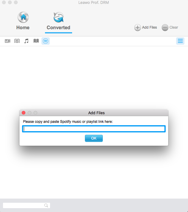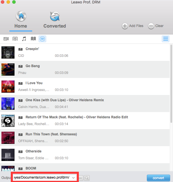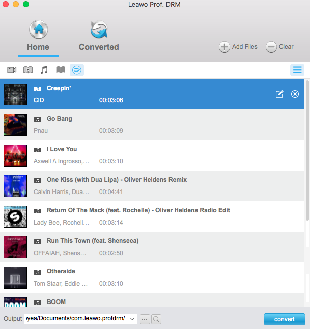 正式上线 Leawo Prof. DRM它会自动启动Spotify桌面软件。您可以直接将Spotify歌曲拖放到这个Spotify歌曲下载器中进行下载。