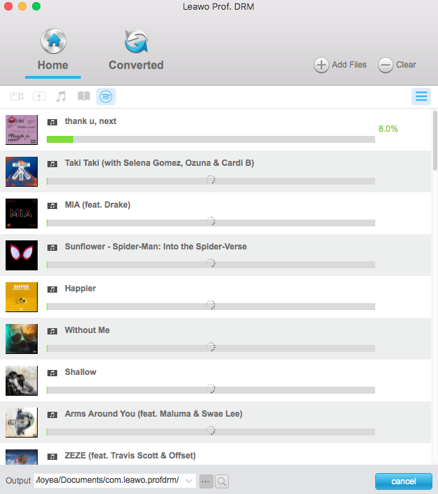 2. 移除 DRM 保护。原有的受 DRM 保护的 Spotify 音乐文件将被替换为无 DRM 保护的音乐文件。现在您可以将 Spotify 音乐导入 Keynote 了。